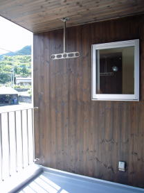 冬季使用に備え物干し用パイプを同じくホワイト塗装とし、お施主さんの身長に合わせて取り付けました。